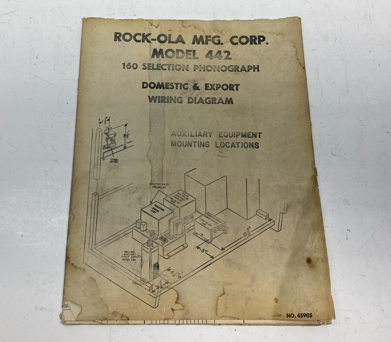 Original Rock-Ola Model Model 442 large fold-out schematic diagram set in used condition with some wear.