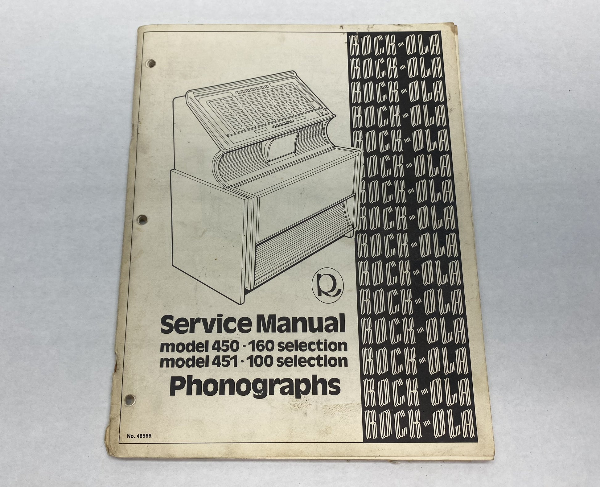 Original Rock-Ola Service Manual for Model 450 and 451 phonographs. This 82 page manual is in good used condition for its age.