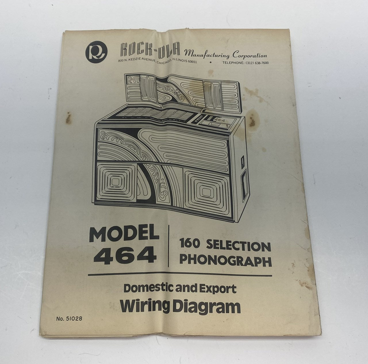 Original Rock-Ola Model Model 464 large fold-out schematic diagram set in used condition with some wear.