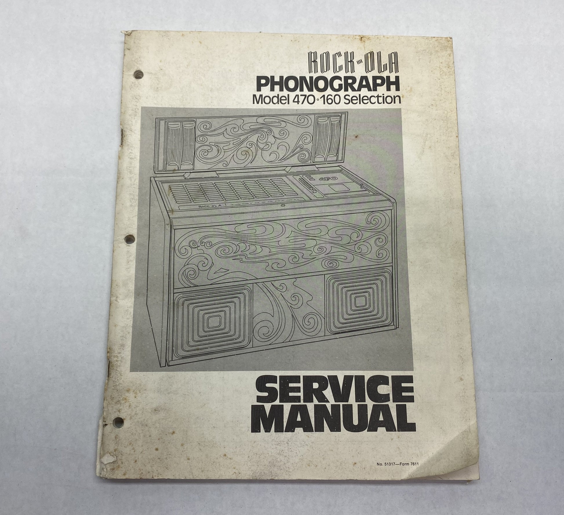 Original Rock-Ola Service Manual for Model 470 phonographs. This 82 page manual is in good used condition for its age.