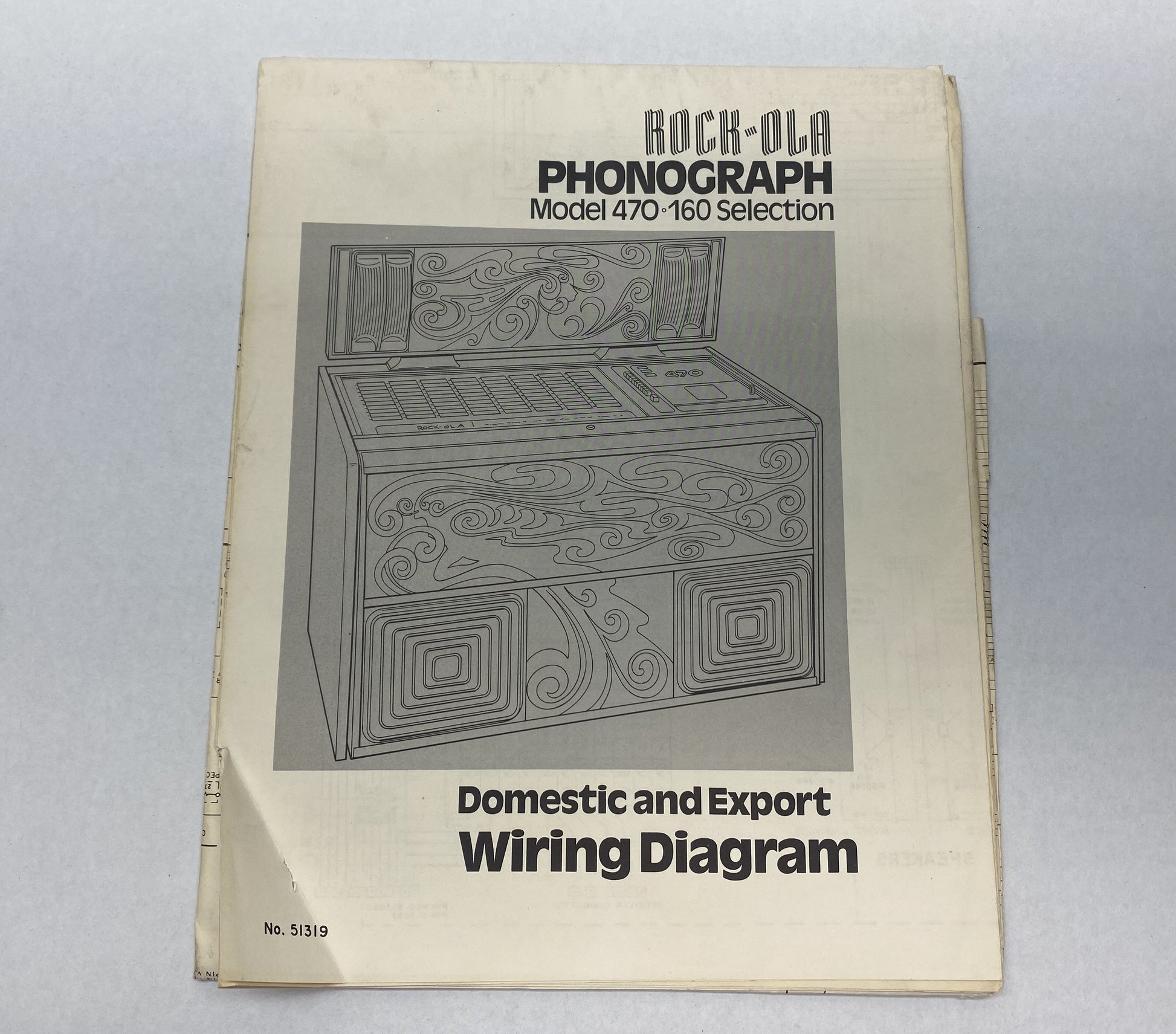 Original Rock-Ola Model Model 470 large fold-out schematic diagram set in used condition with some wear.
