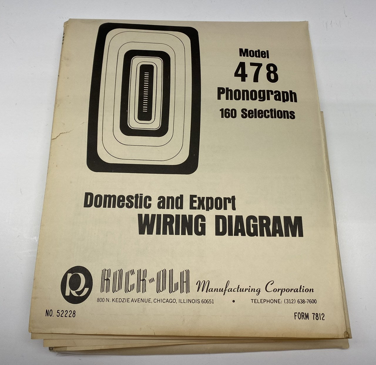 Original Rock-Ola Model 478 phonograph wiring diagram in used condition.