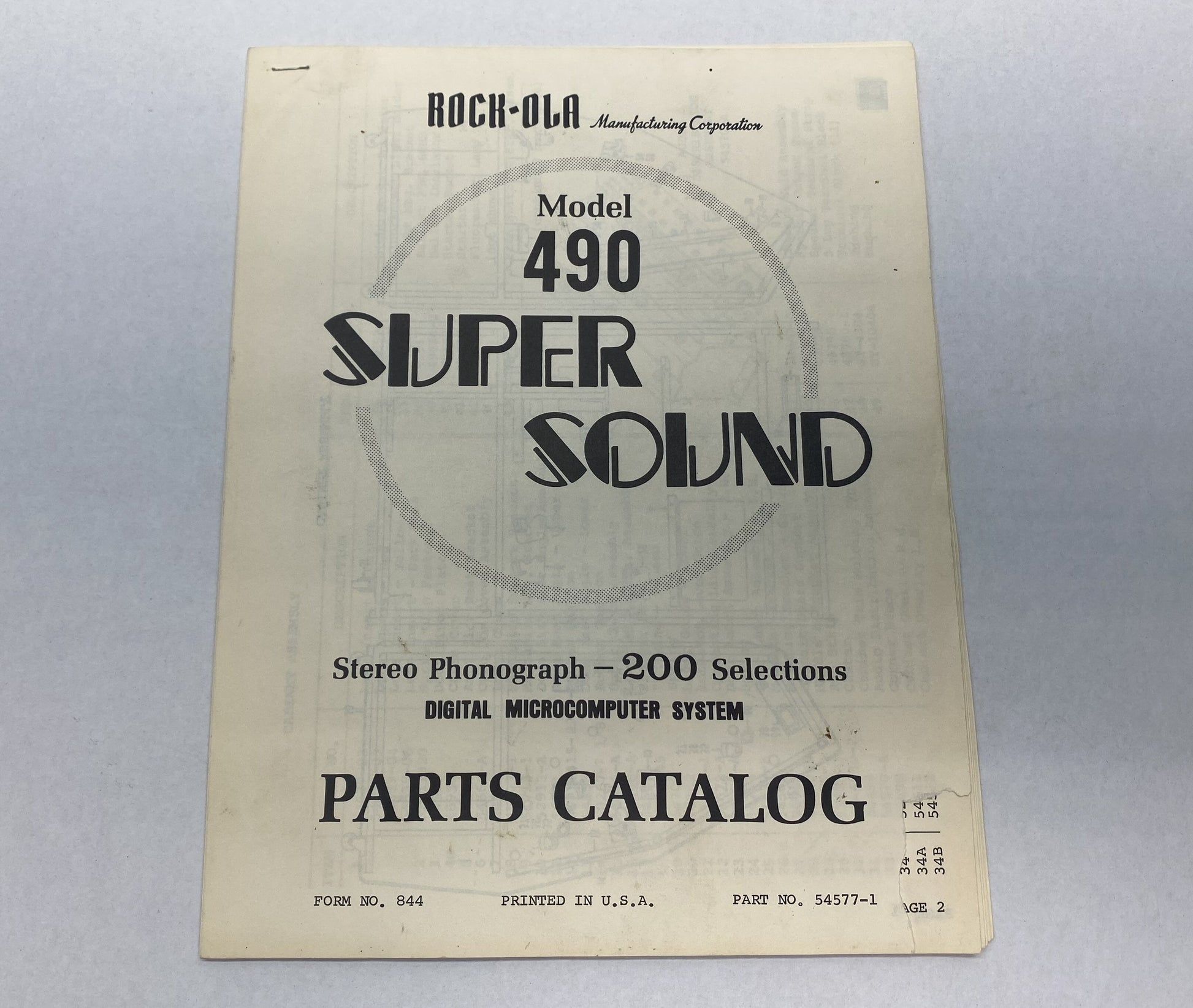 Original Rock-Ola 490 parts catalog in good used condition.