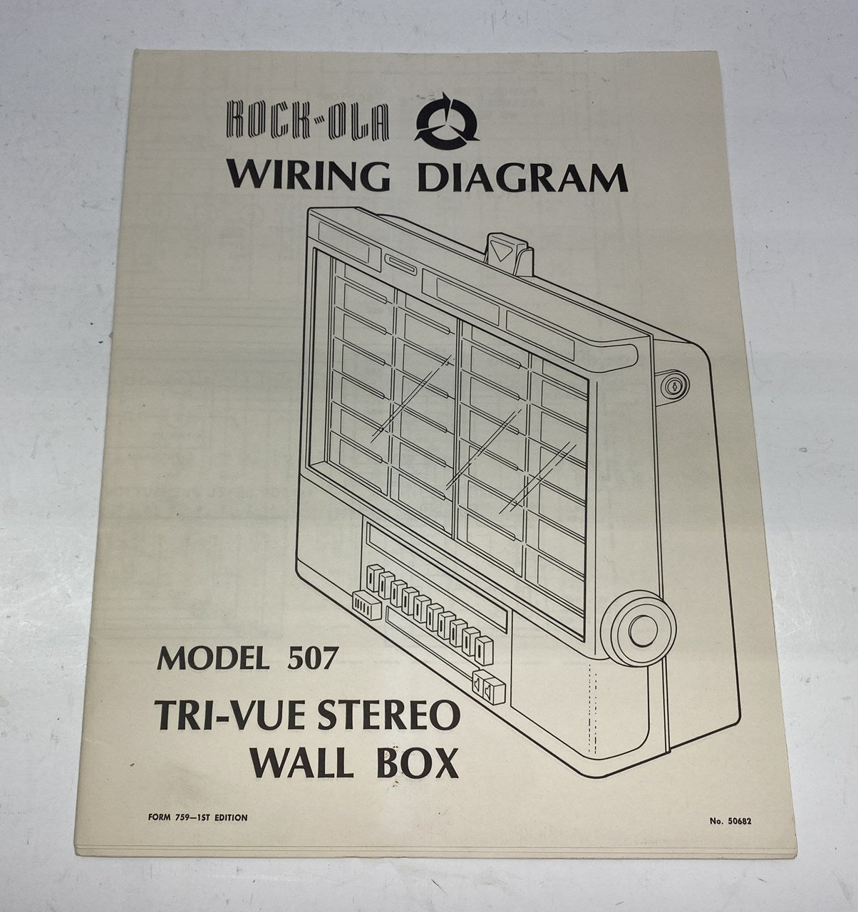 Original Rock-Ola Model 507 Tri-Vue Wall Box large fold-out schematic diagram set in good condition.