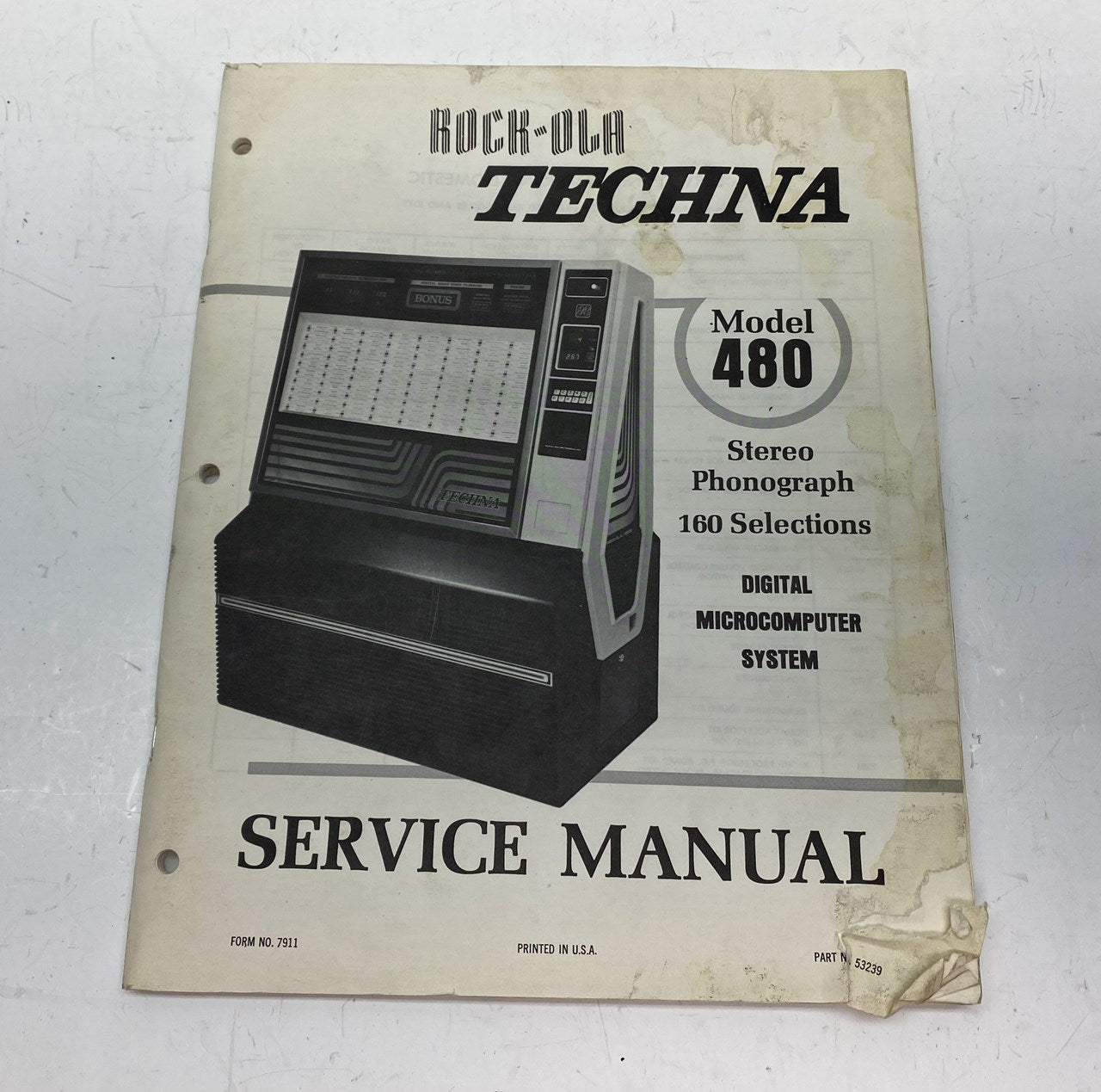 Original Rock-Ola Techna Model 480 phonograph Service Manual in used condition with some cover wear.