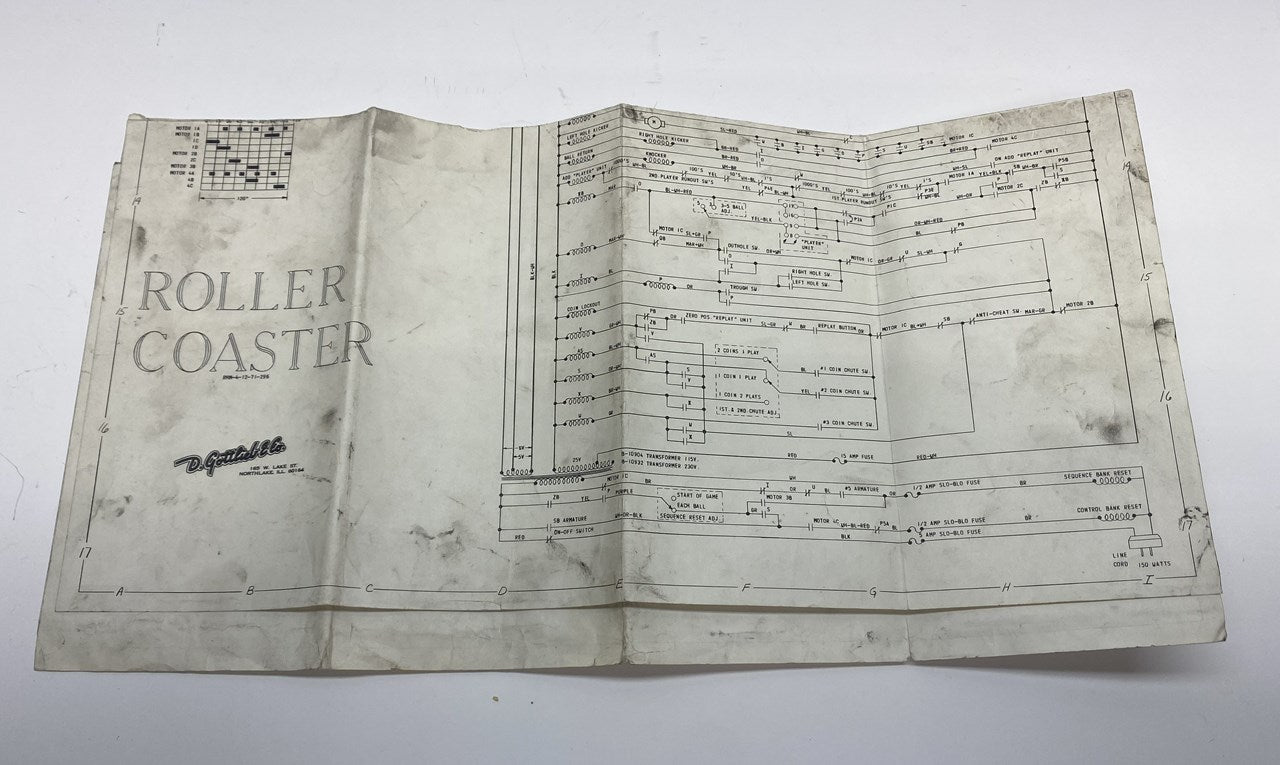 Original Gottlieb Roller Coaster pinball machine schematic/wiring diagram from 1971.