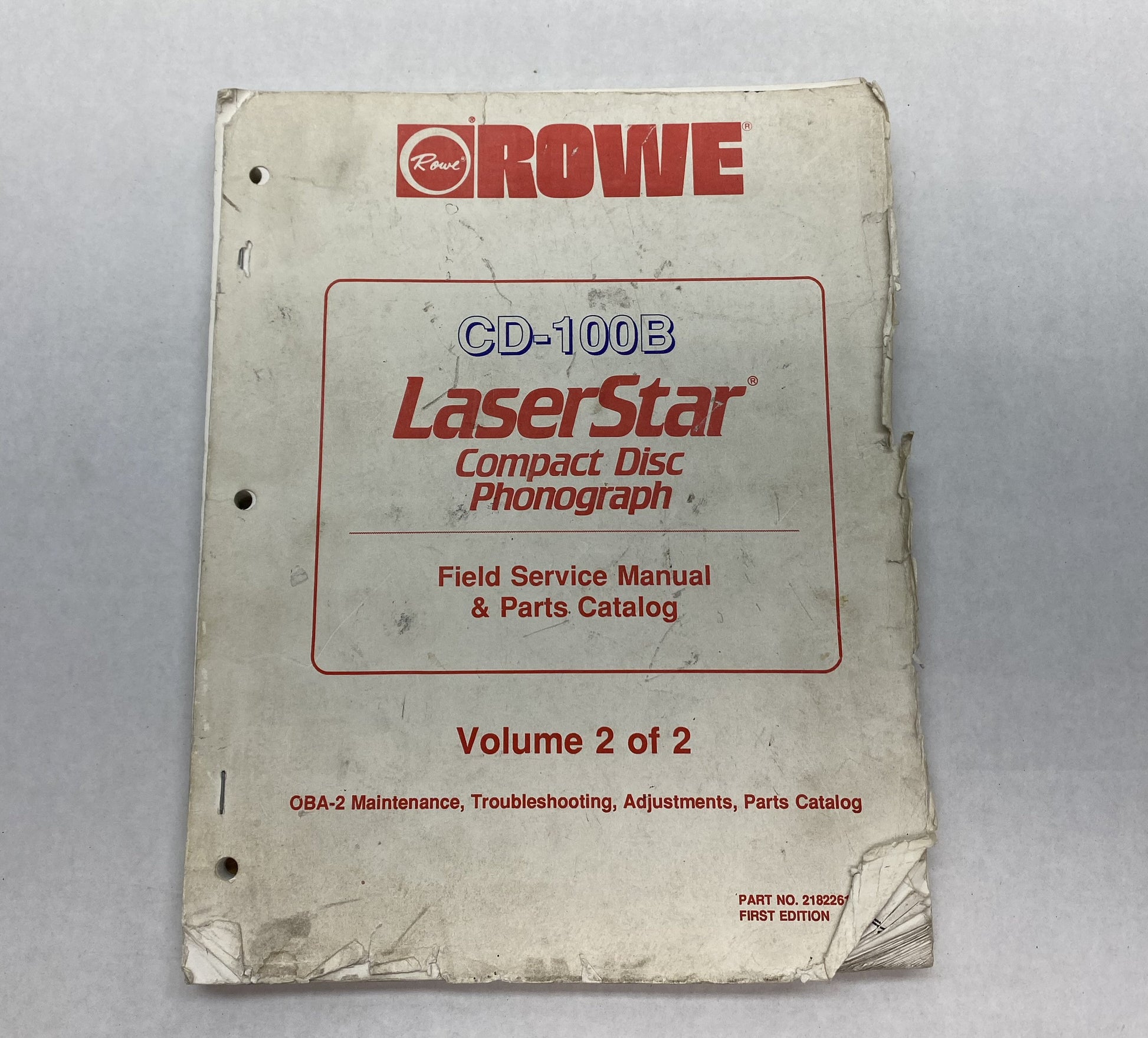 Rowe CD-100B LaserStar compact disc phonograph Field Service Manual and Parts Catalog. Listing is for Volume 2 and 2 only. Manual has some noticeable wear, but is usable.