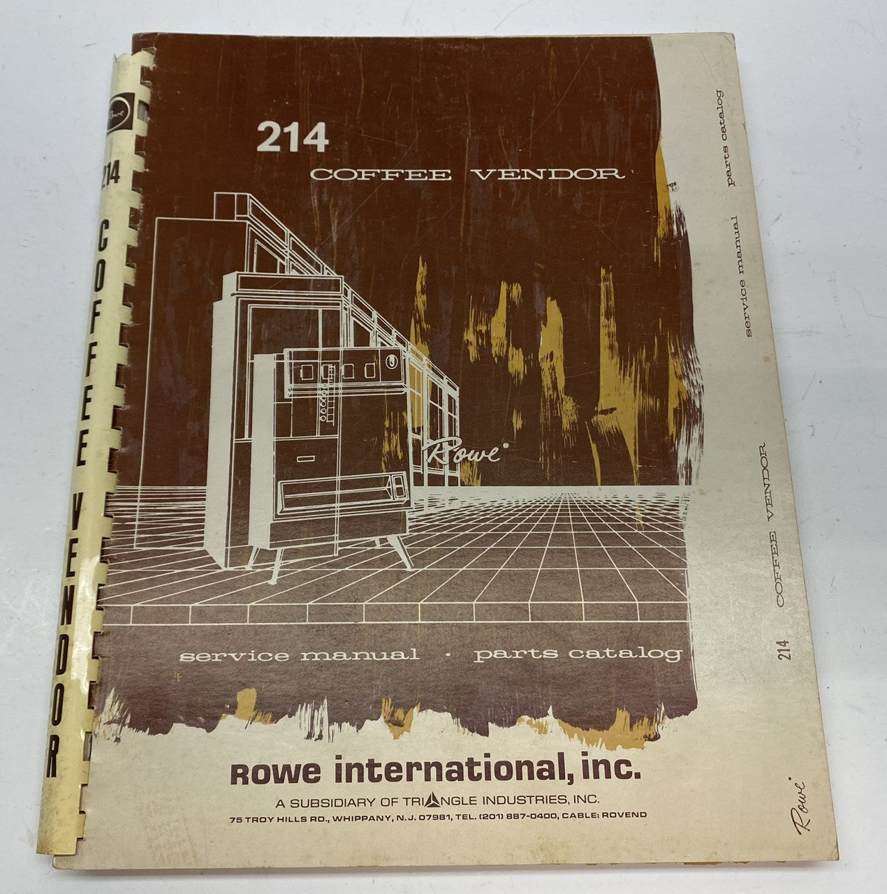Original Rowe Model 214 Coffee Vendor Service Manual and Parts Catalog in used condition. Includes troubleshooing info and schematics among other info.