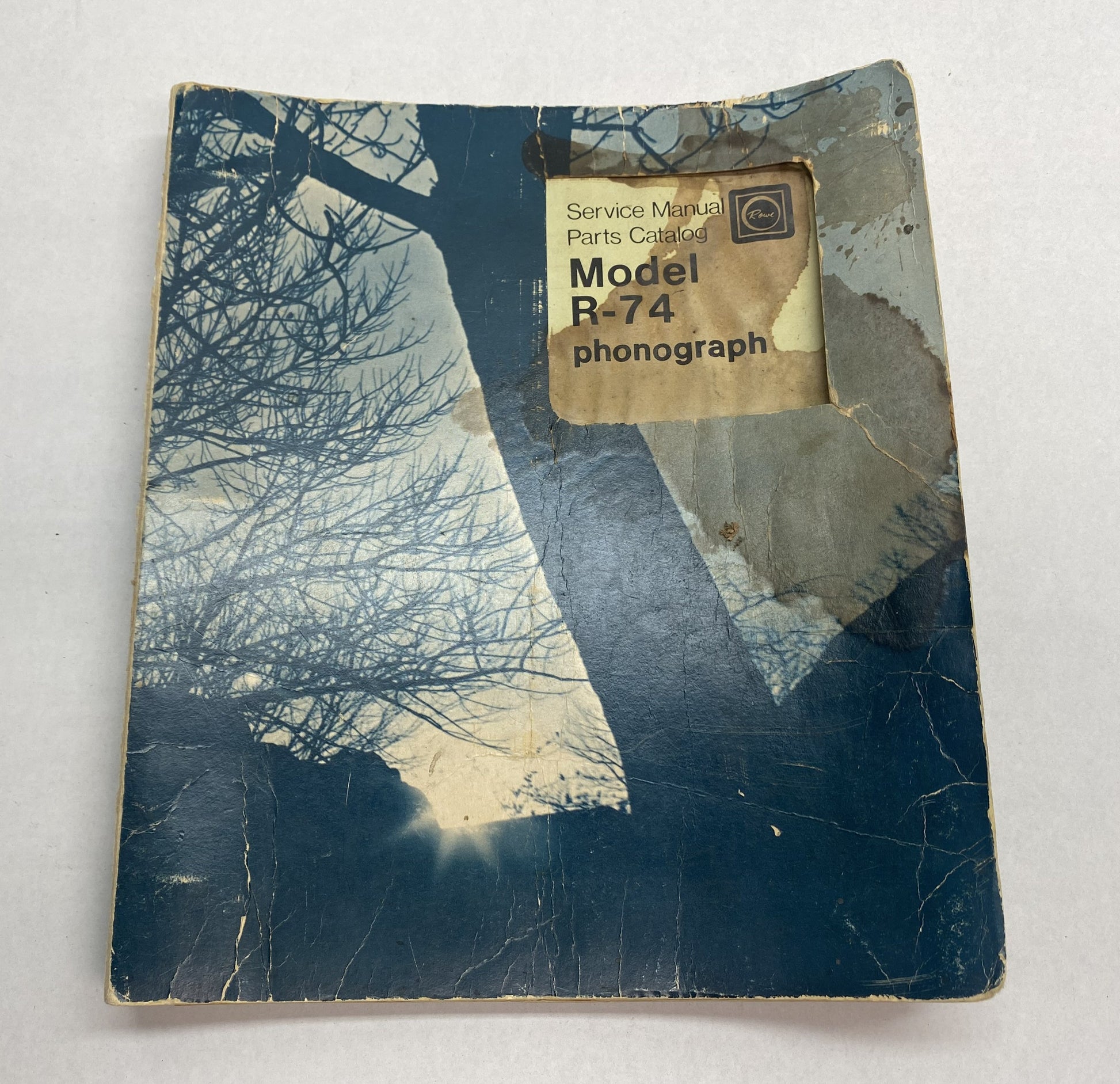 Original Rowe R-74 jukebox Service Manual and Parts Catalog in used condition with some cover and other wear.