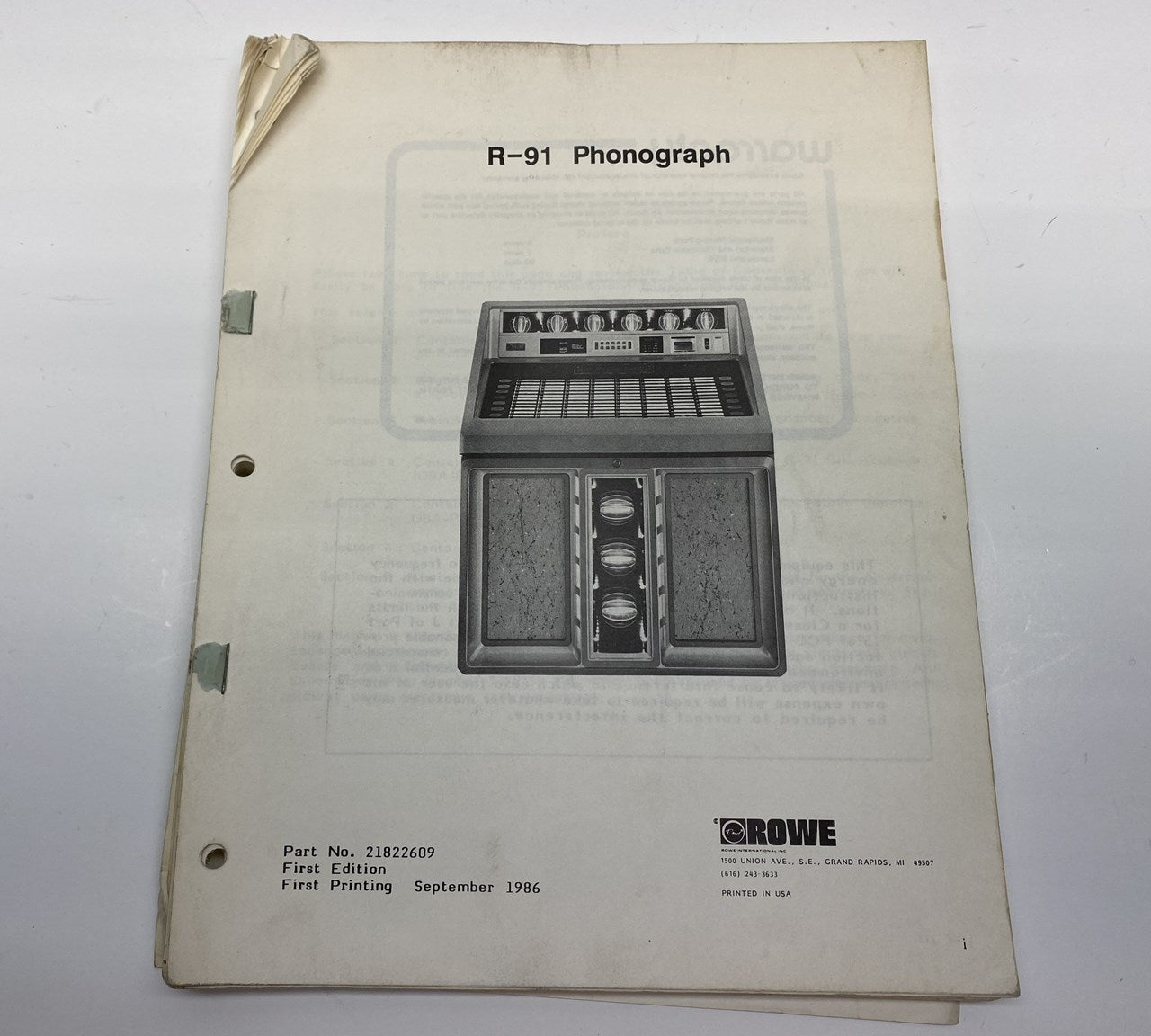 Original Rowe R-91 jukebox Field Service Manual and Parts Catalog. Manual is missing its front cover, otherwise in good condition.