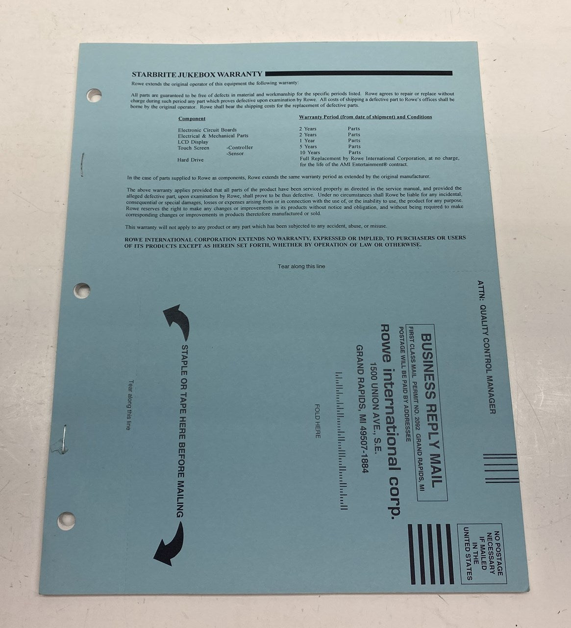 Original Rowe StarBrite Jukebox manual in good condition. Manual does not have a front cover page, just a warranty cover (which looks like it was released this way), but is for a Starbrite Jukebox.