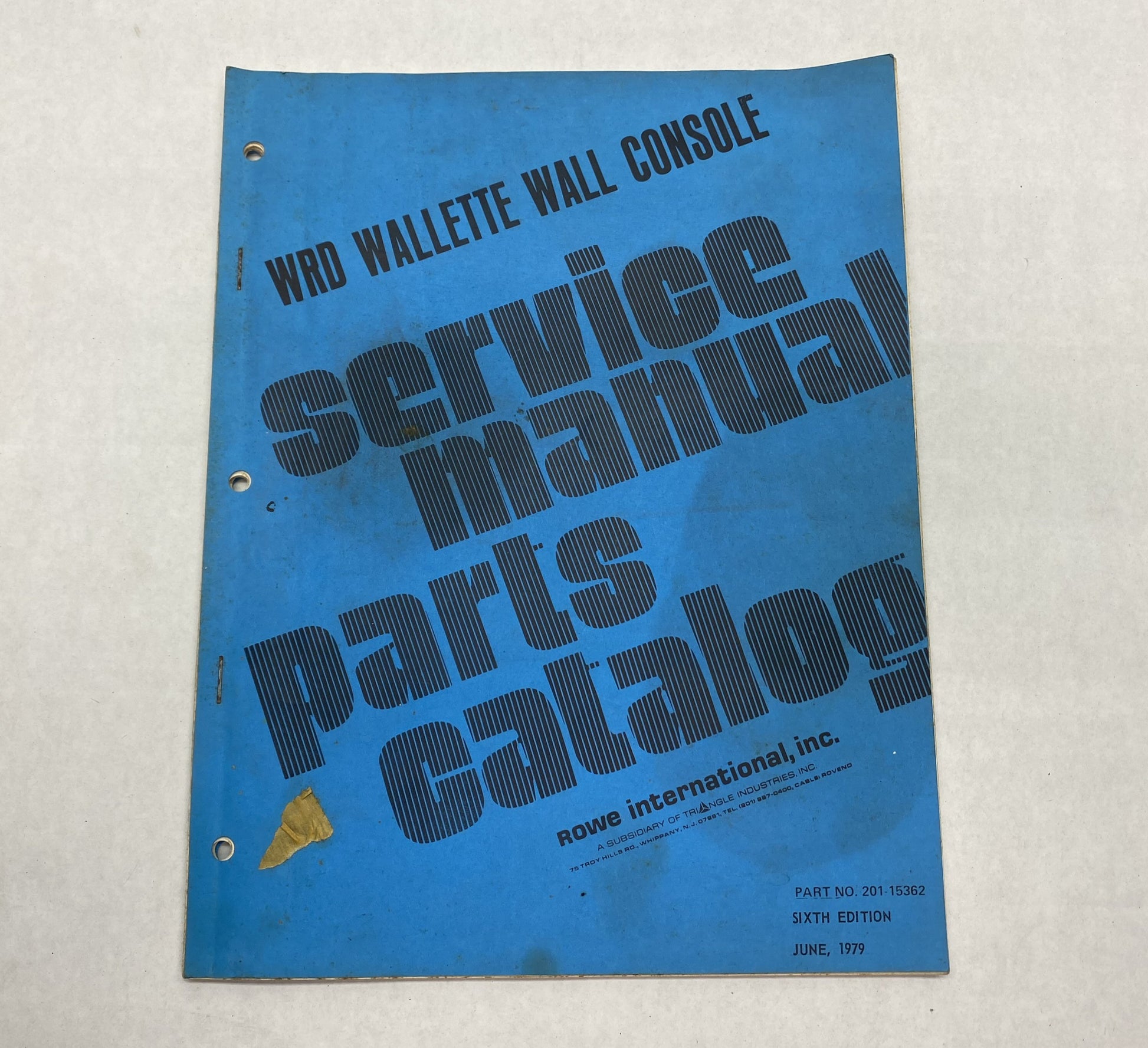 Original Rowe WRD Wallette Wall Console Field Service Manual and Parts Catalog in good used condition with some cover wear.