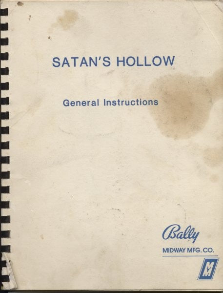 Bally Midway Satan's Hollow General Instructions. Includes game schematics, wiring information and parts lists among other information. This is the manual without the games pictured on the cover.