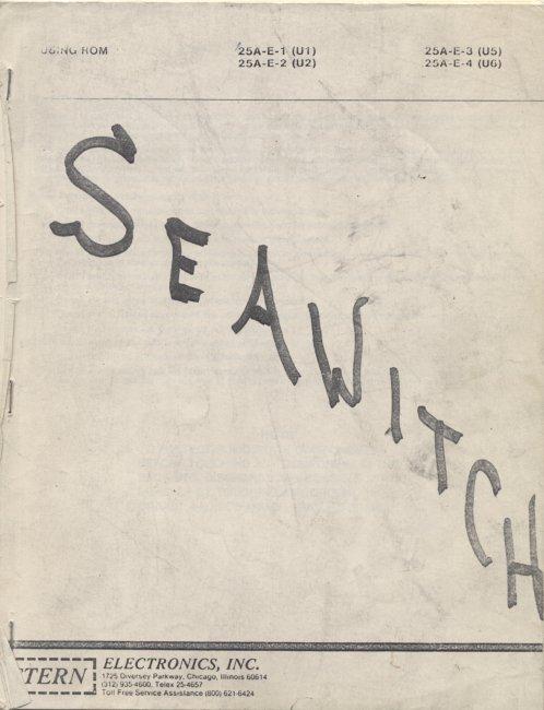 Stern Seawithc pinball machine manual good condition. This is a copy of the manual, not an original. Manual includes operating instructions, parts lists and schematics, among other things.