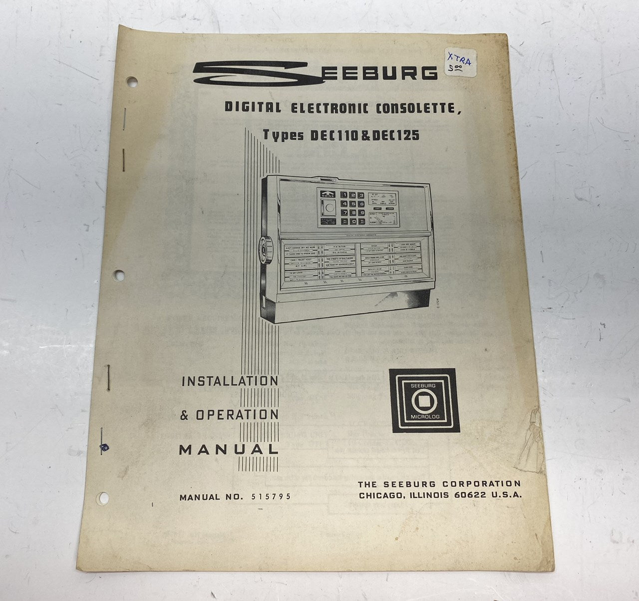 Original Seeburg DEC110 and DEC125 Digital Electronic Consolette Installation and Operation Manual in good condition.