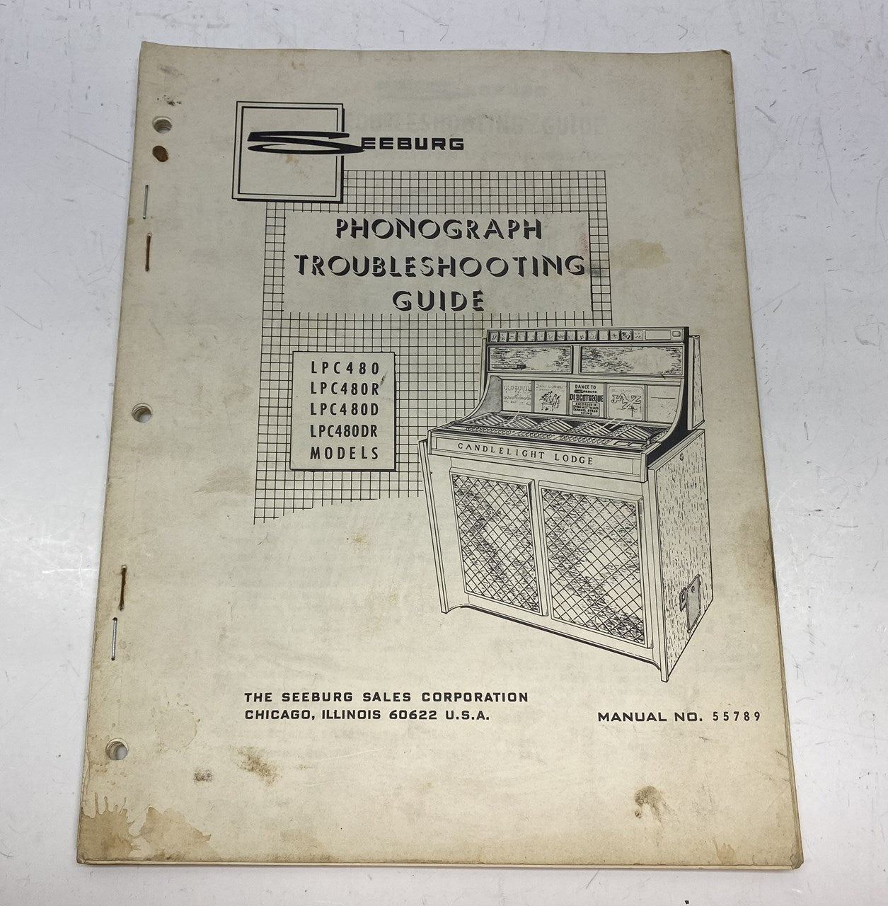 Original Seeburg LPC 480 series (LPC480, LPC480R, LPC480D, LPC480DR Models) phonograph troubleshooting guide in used condition.