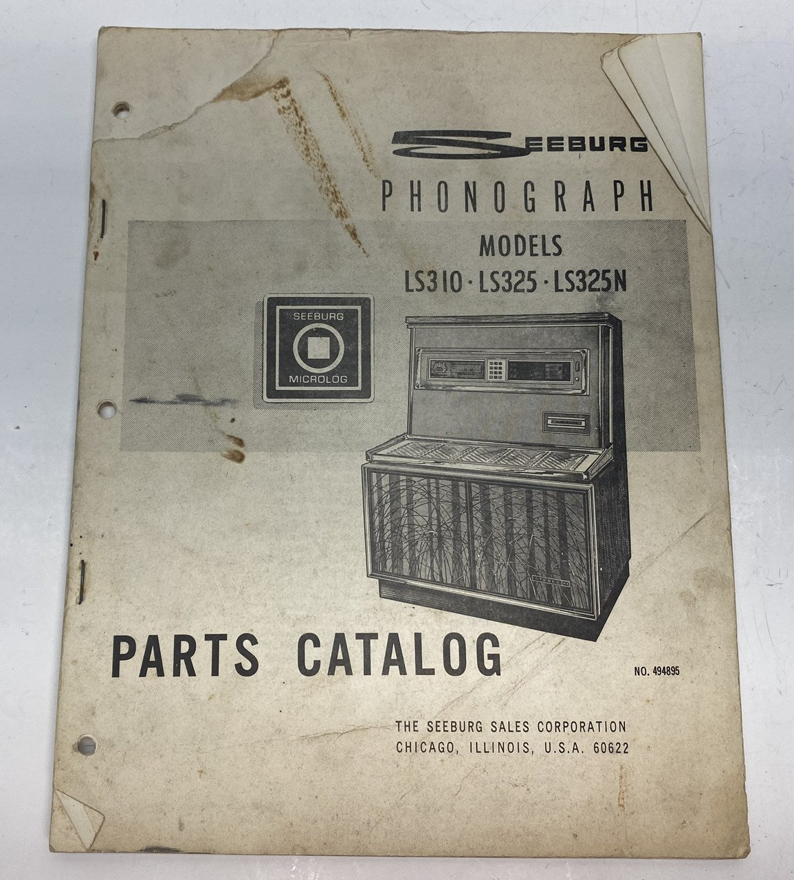 Original Seeburg LS310, LS325 and LS325N phonograph Parts Catalog manual in used condition. Manual is missing its back cover and possibly a page or two at the end (last page number is 60).