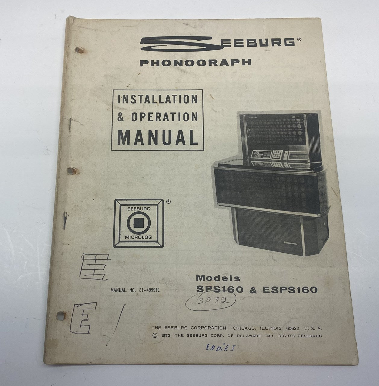 Original Seeburg Model SPS160 and ESPS160 phonographs Installation and Operation Manual in used condition.