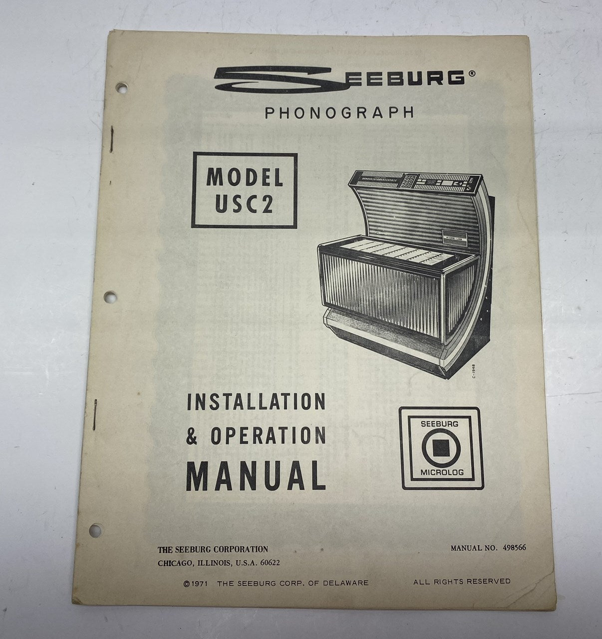 Original Seeburg USC1 Jukebox Installation and Operation Manual in used condition. Manual has some typical wear from use and age.