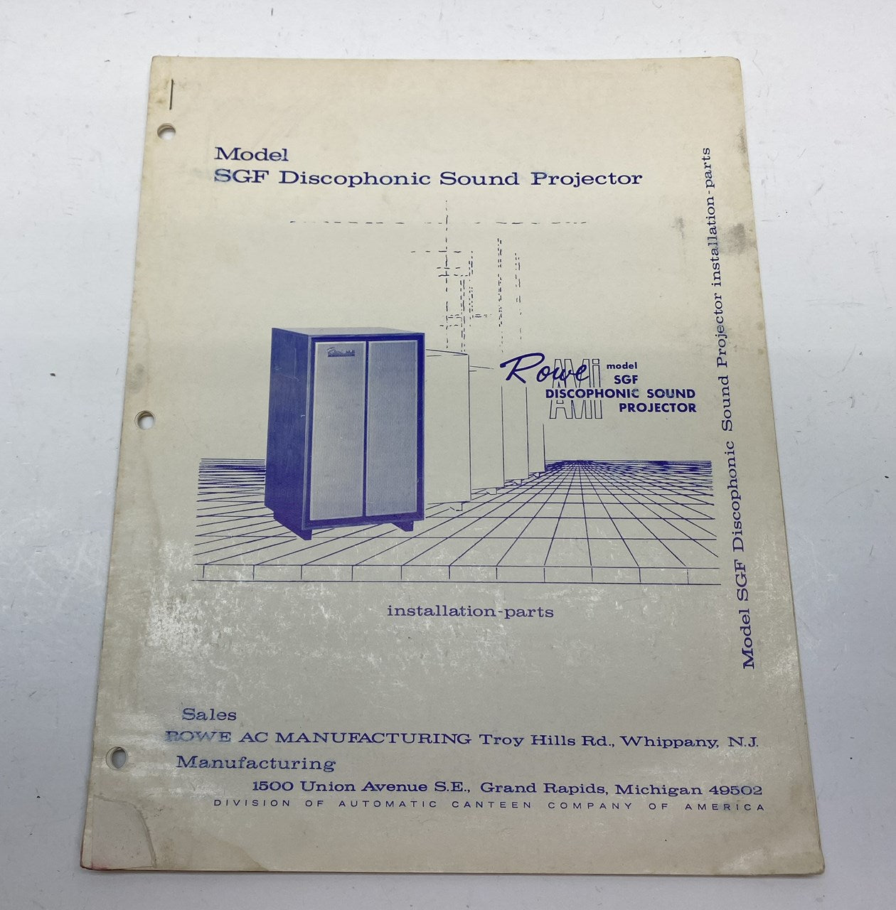 Original Rowe AMI R-80 SGF Discophonic Sound Projector Installation-Parts Catalog in used condition.