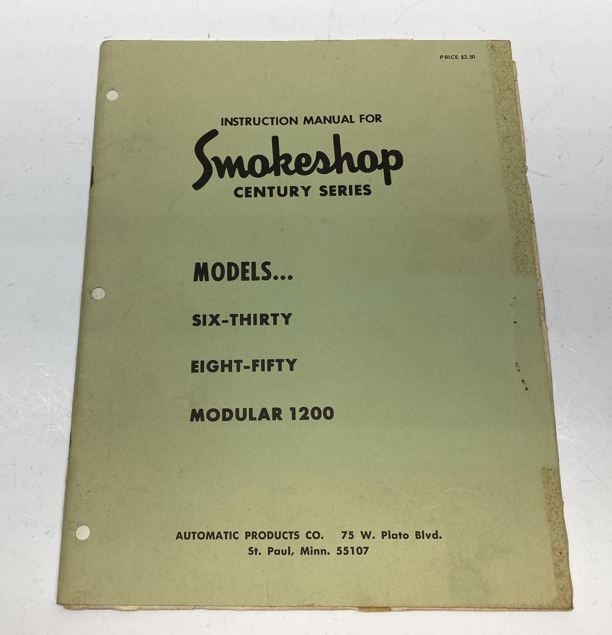 Original Smokeshop Century Series cigarette vending machine Models Six-Thirty, Eight-Fifty and Modular 1200 Instruction manual in good used condition.