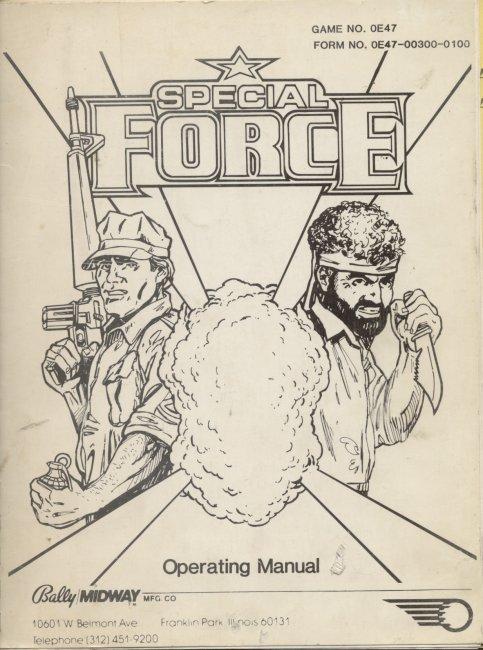 Original Bally Special Force pinball machine operating manual from 1986 in good condition.