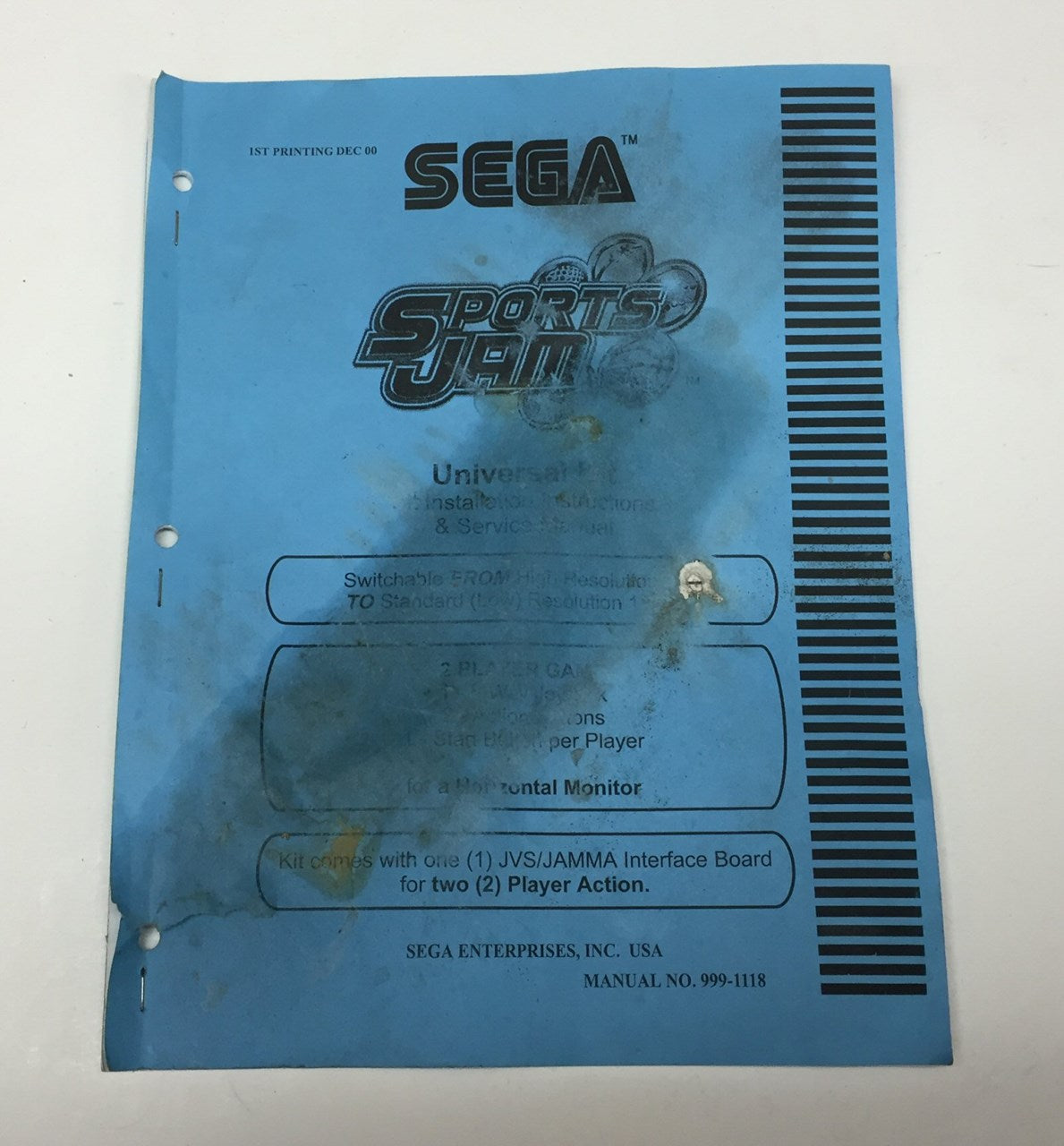 Original Sega Sports Jam Universal Kit Manual in used condition. This one does have some cover wear as shown, but is still legible.