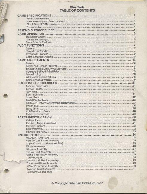 Original Data East Star Trek: 25th Anniversary Edition pinball machine manual. This manual is missing the cover, but otherwise complete and in good condition.