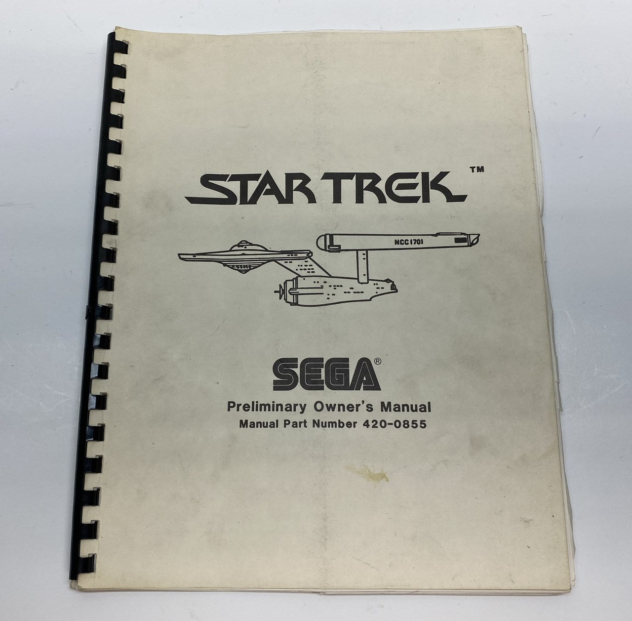 Original Sega Star Trek Preliminary Owner's Manual good condition. Manual includes operating instructions, parts lists and schematics, among other things.