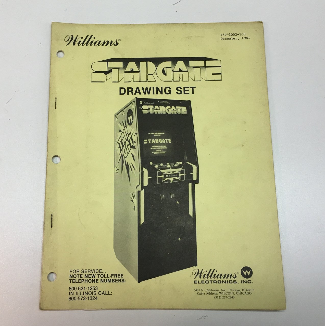 Williams Stargate Drawing Set. Includes game schematics and wiring information as parts list. Does not include the instruction manual, just the drawing set.