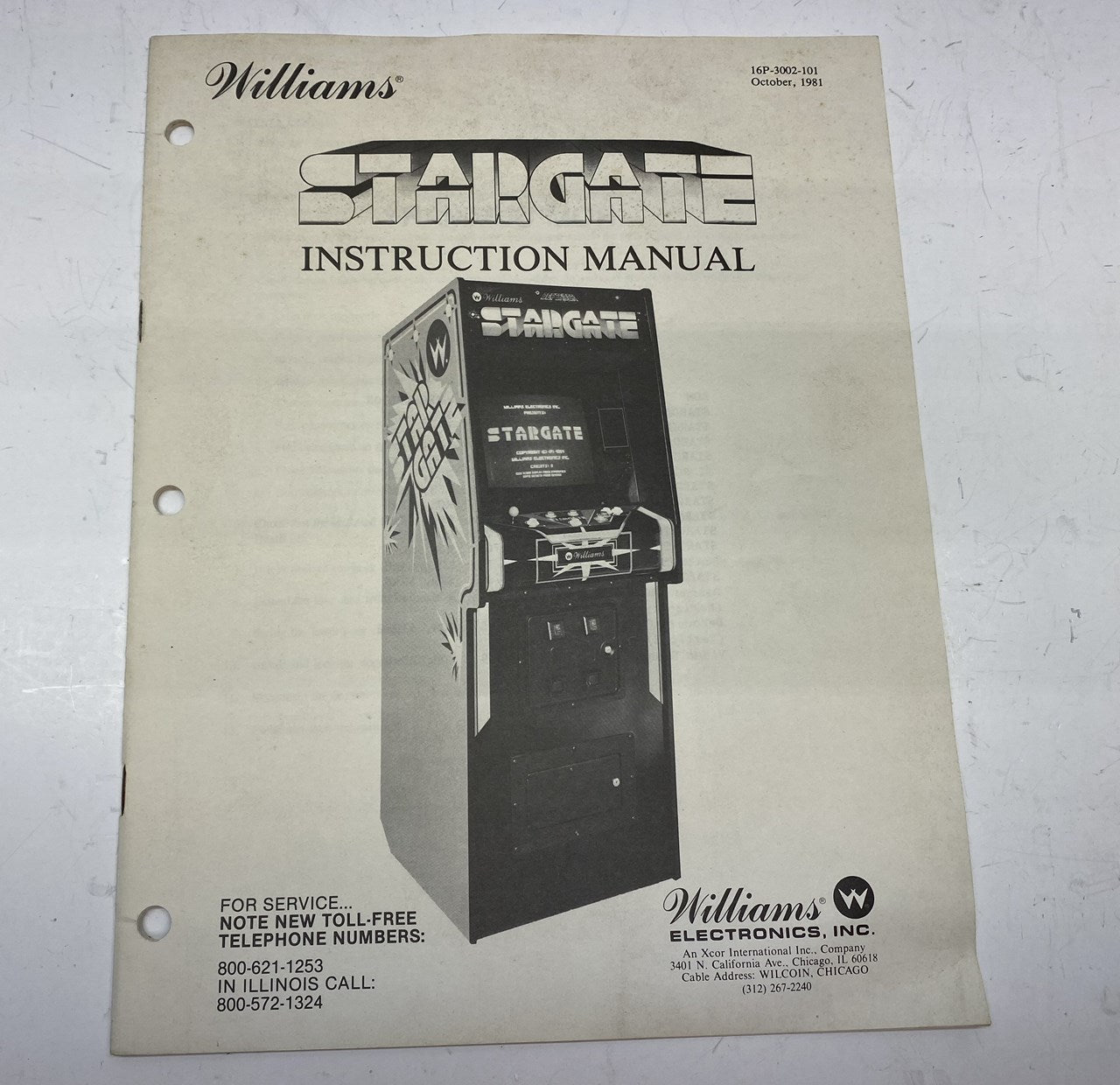 Williams Stargate Upright Instruction Manual. Manual includes game operator information and related information.