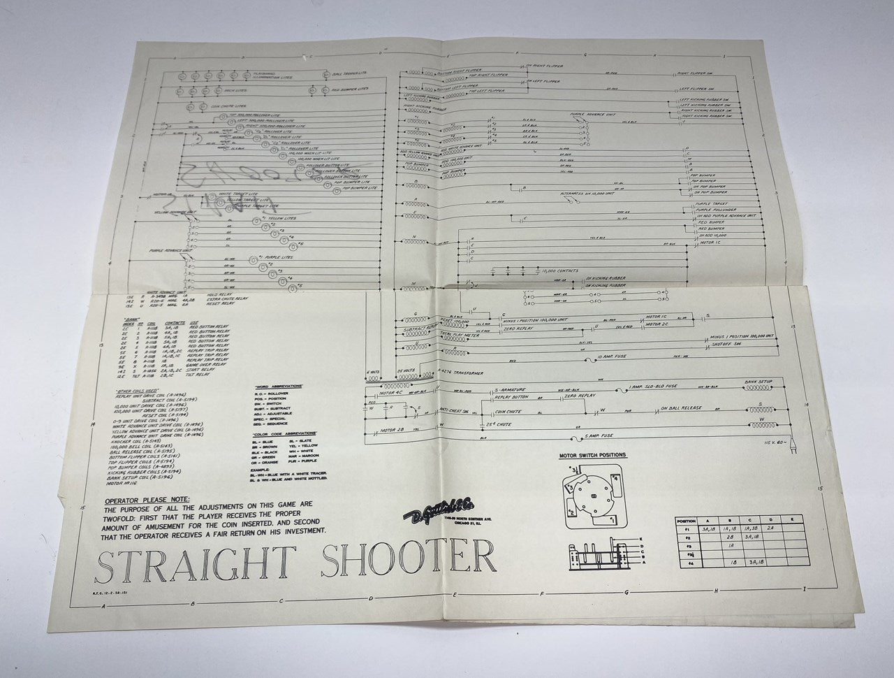 Original Gottlieb Straight Shooter pinball machine schematic/wiring diagram from 1959.