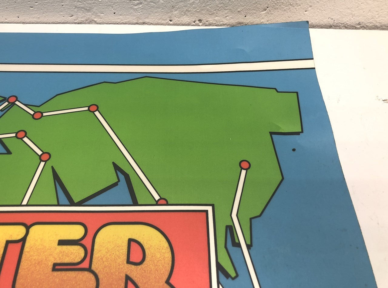 One piece of new old stock (NOS) Buster Bros. control panel overlay. This is an original overlay that has never been used. It does have have some wear spots from sitting over the years (couple of dings and small bend), but still should be usable on a game.
