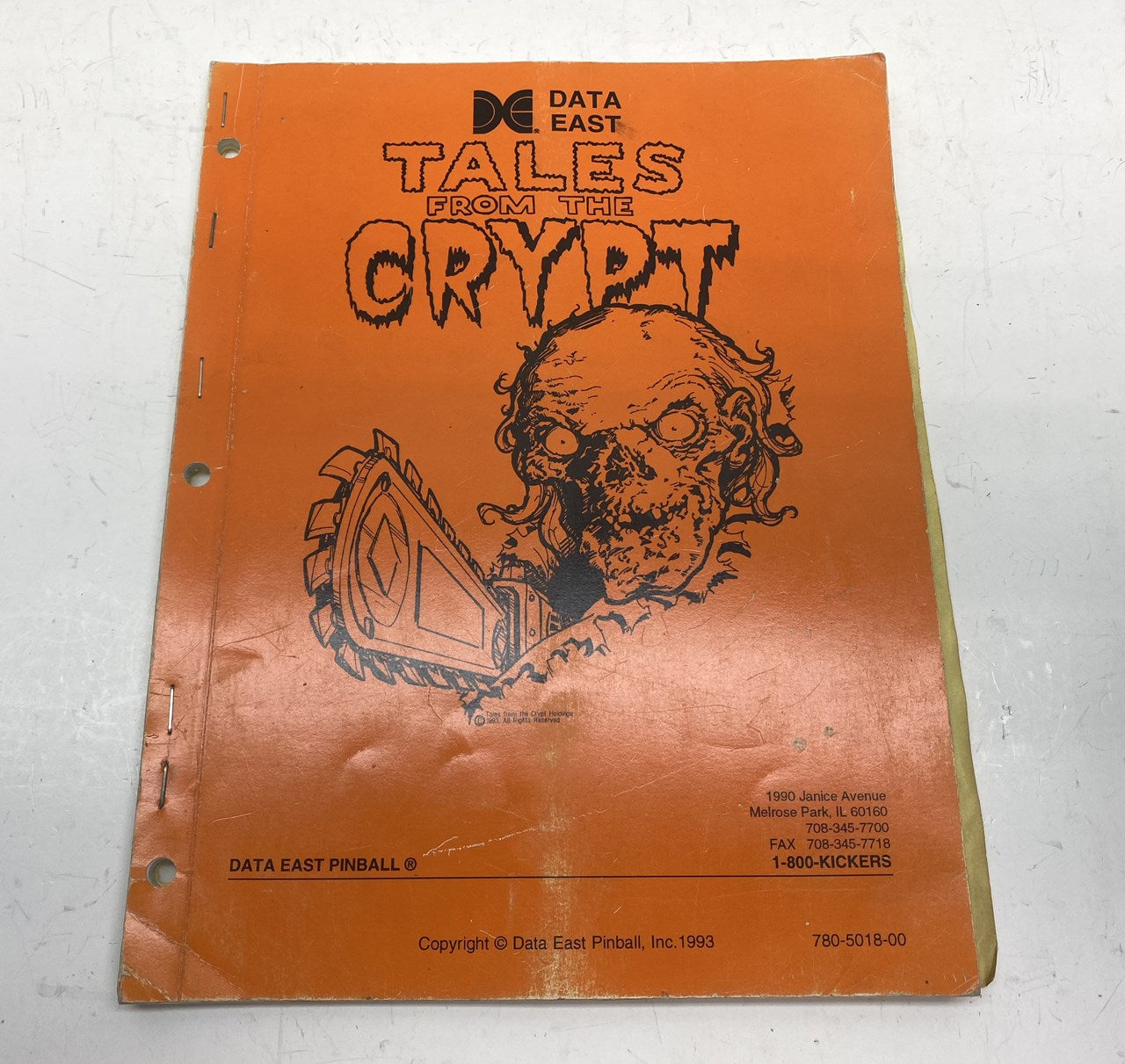 Original Data East Tales from the Crypt pinball machine manual from 1993 in used condition. Manual is missing its back cover.