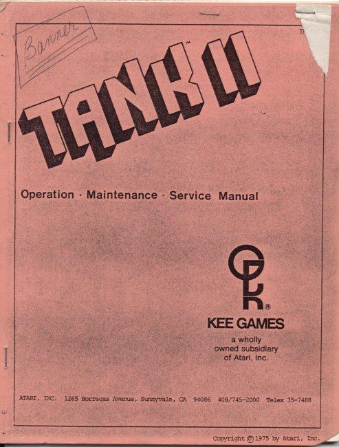 Kee Games Tank II arcade game manual. This appears to be a copy of the original manual.