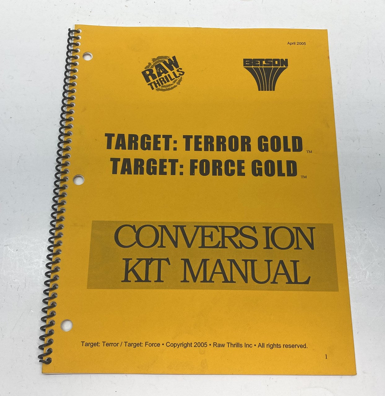 Original Raw Thrills Target: Terror Gold to Target: Force Gold Conversion arcade game Operators' manual in very good condition.