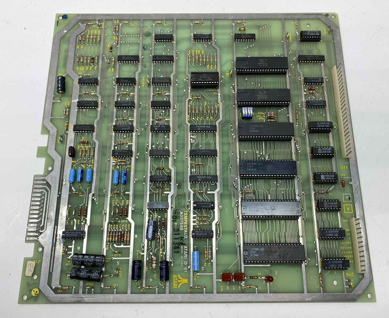 Original Atari Tempest arcade game Aux circuit board from 1981 in working condition. This board has been tested with a main Tempest CPU board (not included) and works fine.