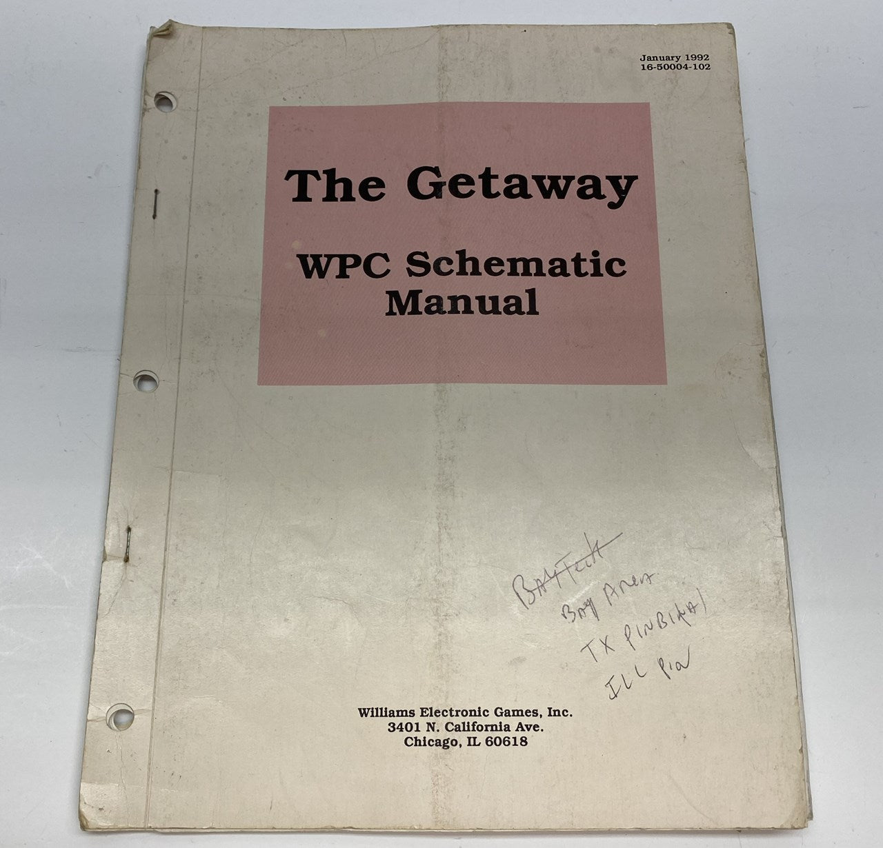 Original Williams WPC Schematic Manual for The Getaway pinball machine manual from 1992 in very good condition. Manual includes schematics and wiring diagrams.
