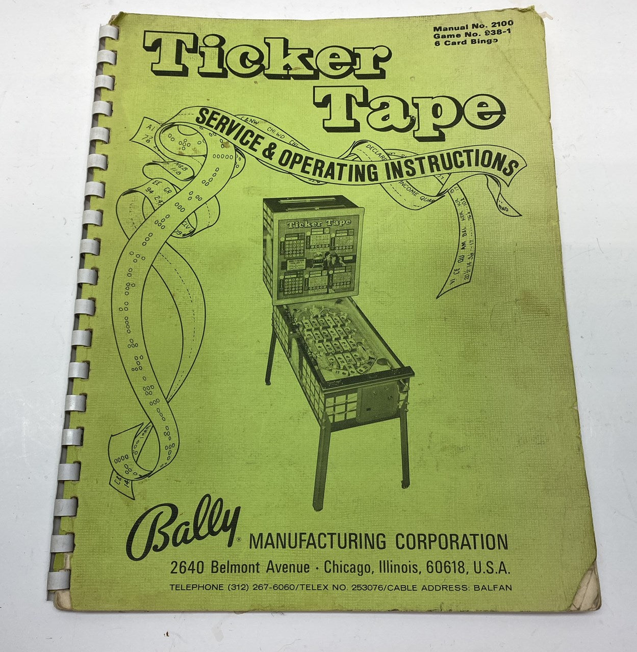 Original Bally Ticker Tape Service and Operation Instructions manual in good, used condition with some typical wear.