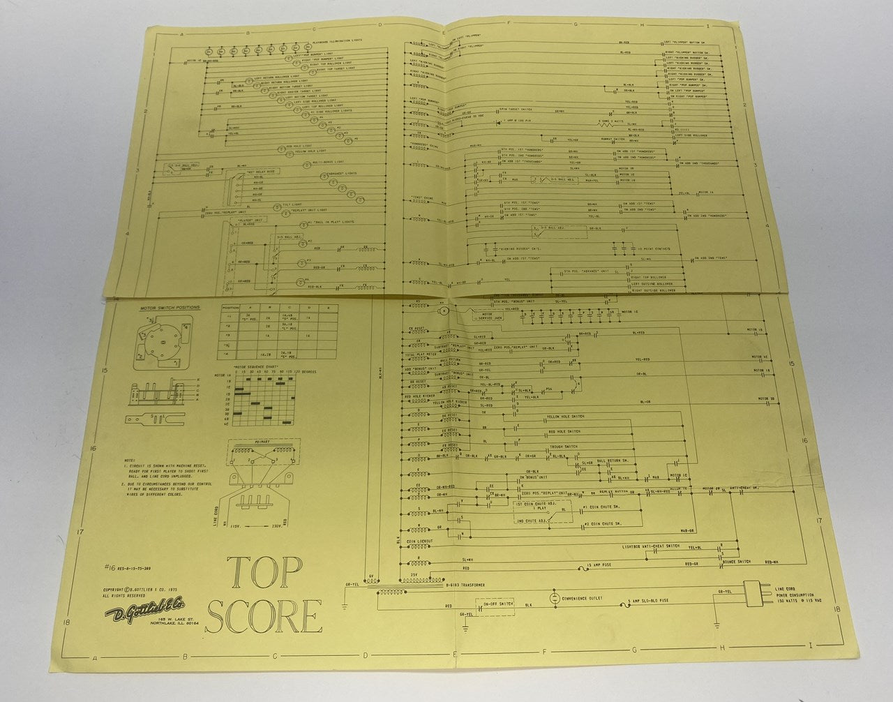 The pinball schematics we sell are generally large fold-out pages with schematics for pinball machines. These are original sheets, have been stored folded and have some wear, but are still usable. The picture below is a sample picture only.