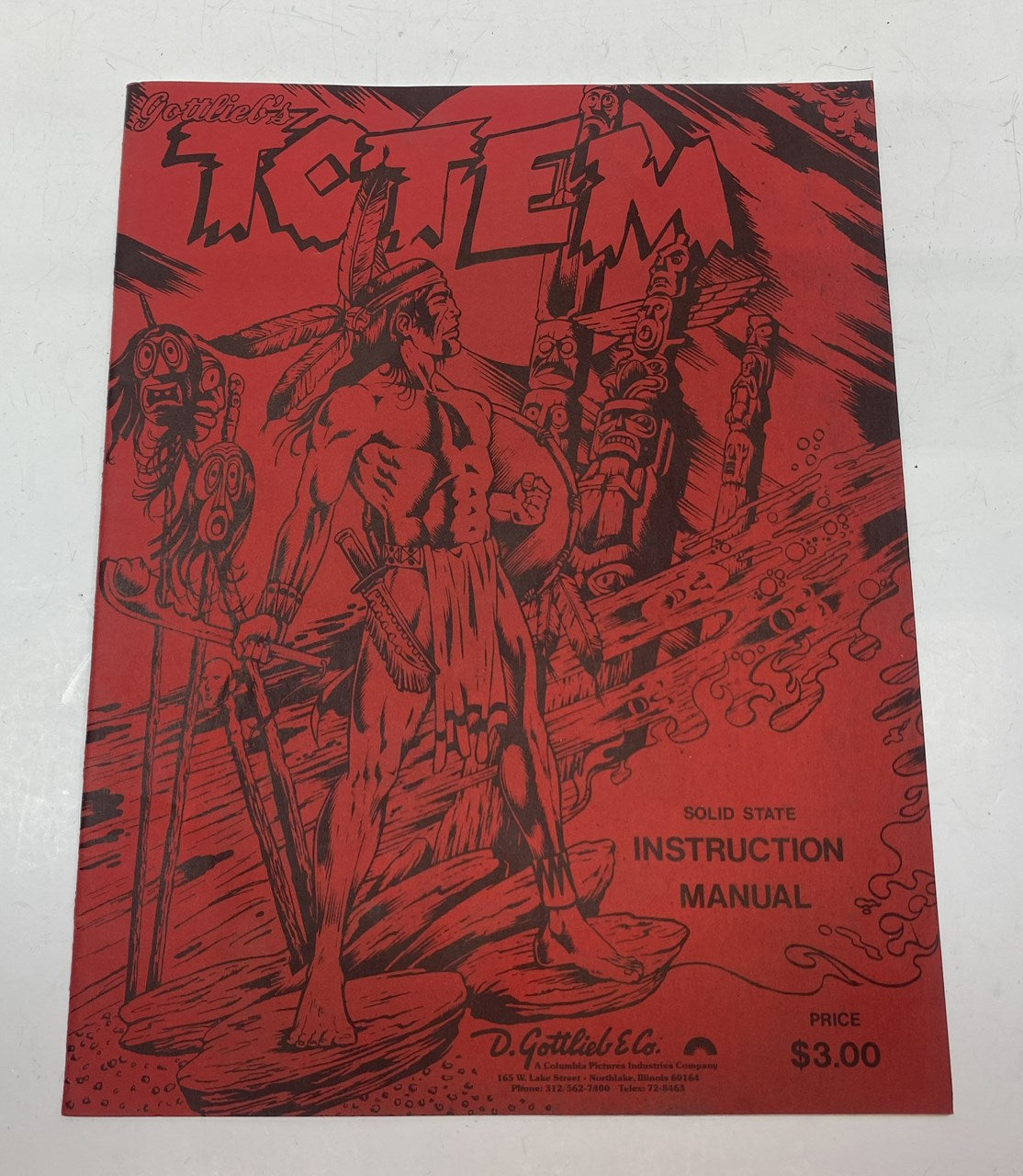 Original Gottlieb Totem pinball machine manual from 1979 in very good condition. Manual includes operating instructions, parts lists and wiring diagrams, among other things.