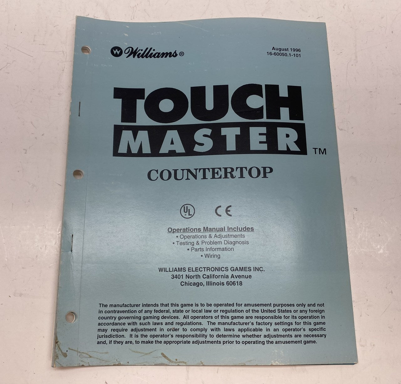 Original Williams Touch Master countertop arcade game manual in good condition.