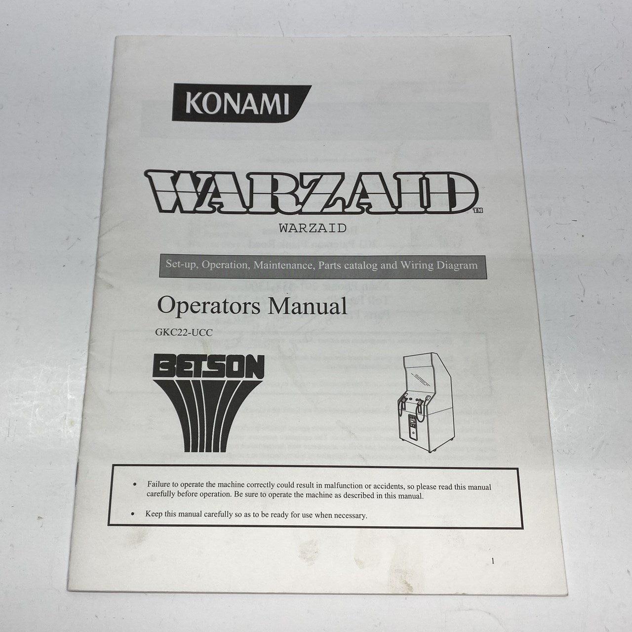 Original Konami Warzaid Operator's Manual in used condition.