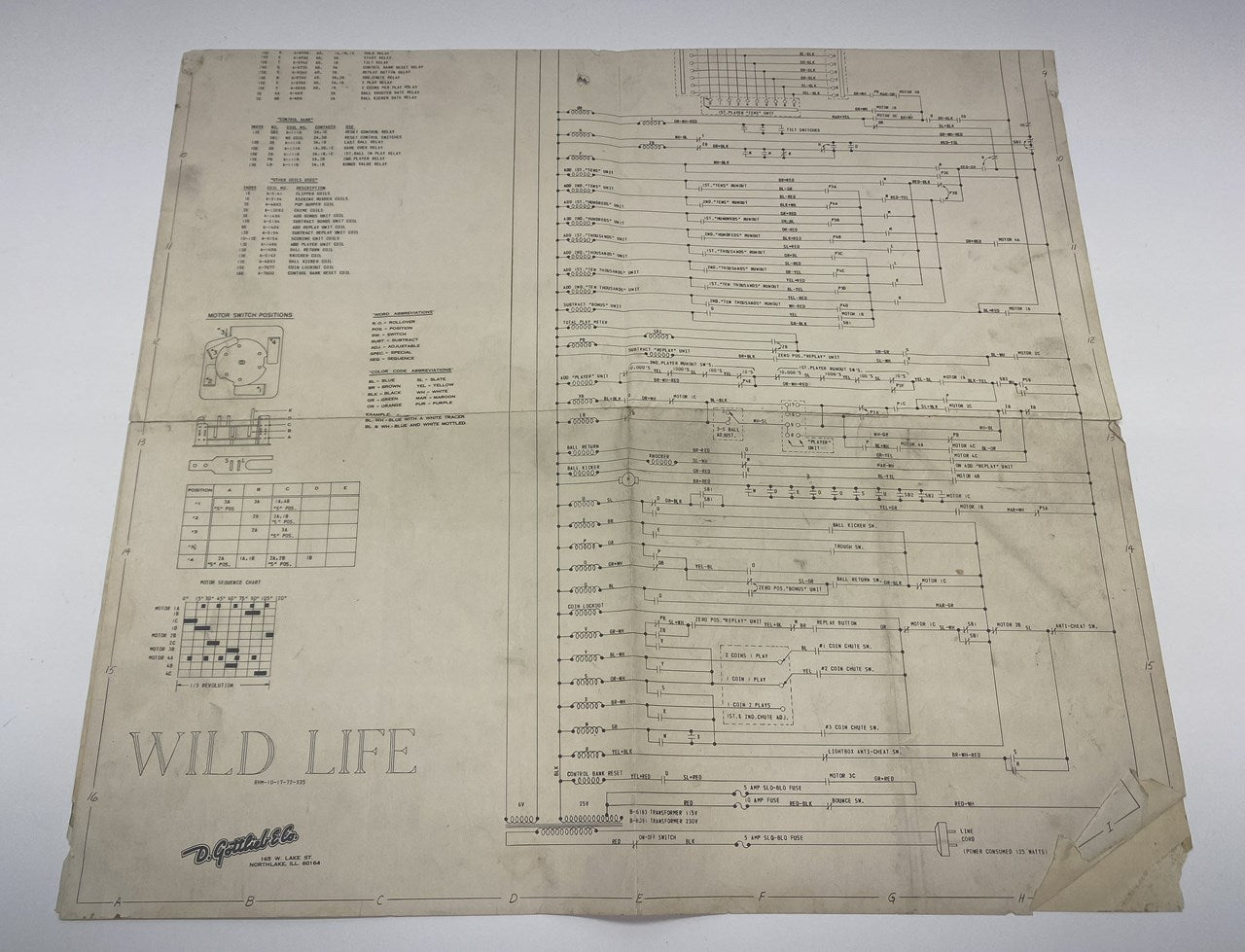 Original Gottlieb Wild Life pinball machine schematic/wiring diagram from 1972.