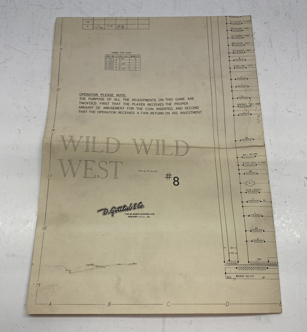Original Gottlieb Wild Wild West pinball machine schematic/wiring diagram from 1969.