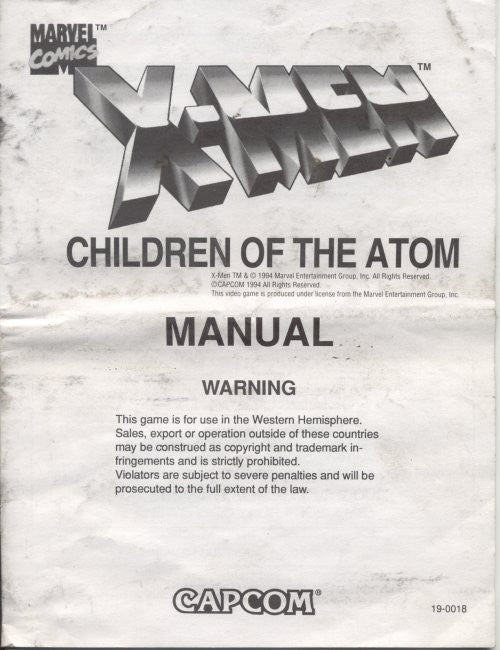 Original Capcom X-Men: Children Of The Atom arcade game manual.